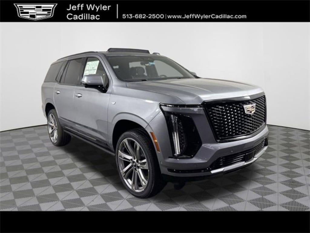 2025 Cadillac Escalade Sport Argent Silver Metallic CALL NOW FOR YOU VIP APPOINTMENT 513-682-2500, 4WD, Black Leather. 6.2L V8 4WD 10-Speed Automatic 14/18 City/Highway MPG Wyler Family First Package Includes: NanoCure Appearance Protection: Exterior & Interior Chemical Sealant Applied to Protect Against Environmental Hazards (7 Year Warranty Coverage). Pulse- Rear end Collision Avoidance System Theft Deterrent Strategy gives you 5 Years of Coverage against vehicle Theft, Offering up to a $5,000 benefit.