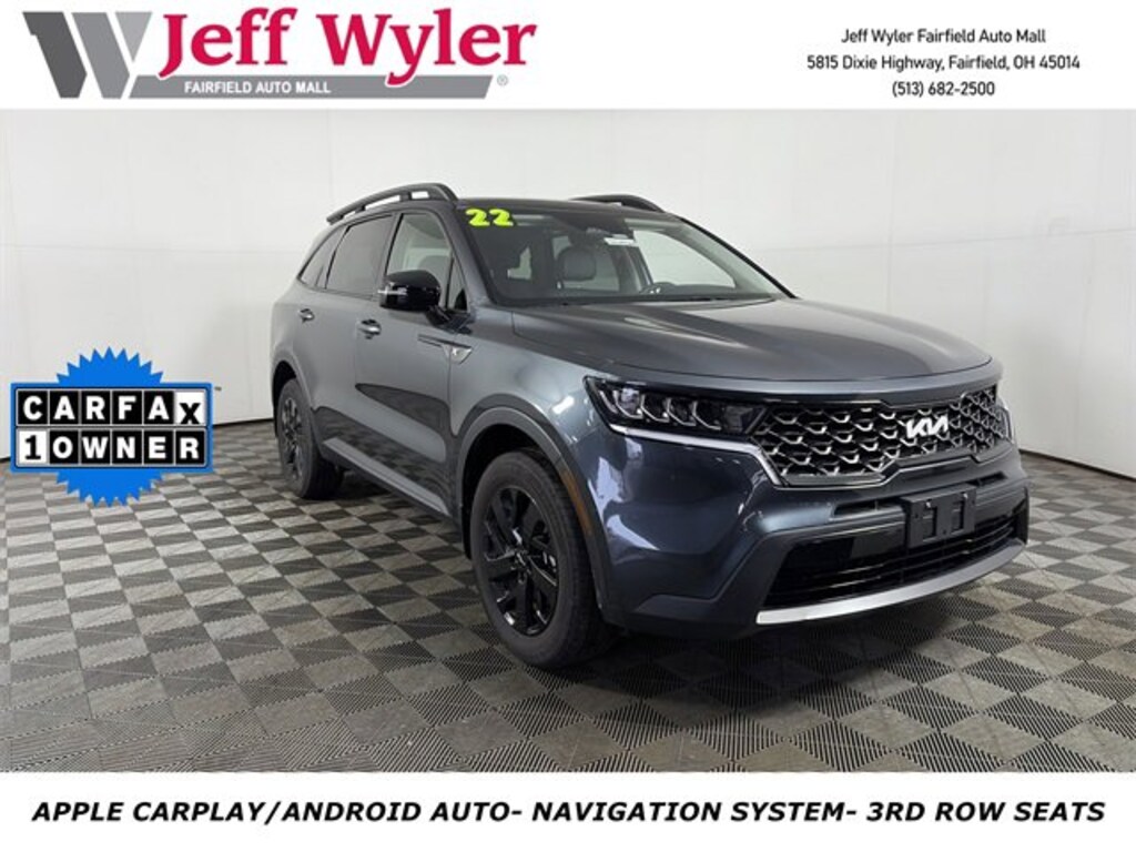 CARFAX One-Owner. Clean CARFAX. Certified. Gravity Gray 2022 Kia Sorento S AWD 8-Speed Automatic 2.5L I4 DGI DOHC 16V LEV3-ULEV70 191hp ** FACTORY CERTIFIED**, ** 6 MONTHS/6,000 MILES WARRANTY **, ** ALL-WHEEL DRIVE/AWD **, ** BALANCE OF FACTORY WARRANTY **, ** ONE OWNER CARFAX **, ** CLEAN CARFAX REPORT**, ** BLUETOOTH/HANDSFREE **, ** POWER SUNROOF/MOONROOF **, ** REAR BACKUP CAMERA **, ** THIRD ROW SEATING **, ** DUAL CLIMATE CONTROL **, ** PASSED OUR SAFETY INSPECTION **, ** PUSH BUTTON START **, ** ACCIDENT FREE CARFAX **, ** GREAT VALUE **, ** GREAT FUEL ECONOMY **, ** AFFORDABLE PRICE RANGE **, ** WILL NOT LAST LONG **, ** INQUIRE NOW! **, ** SUPER CLEAN SUV **, 5801 DIXIE HIGHWAY 513-682-2500, GREAT VALUE, CALL NOW FOR YOU VIP APPOINTMENT 513-682-2500, ** CAR PLAY **, AWD, LED Interior Lighting, Navigation System, Panoramic Sunroof Package, Power Sunroof w/Power Sunshade.
